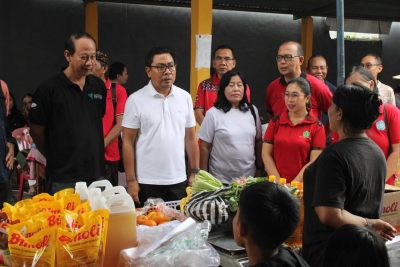 Wakil Wali Kota Denpasar I Kadek Agus Arya Wibawa saat meninjau Pasar Murah Pengendalian Inflasi di Kota Denpasar di Banjar Bhuana Merta, Desa Tegal Harum, Denpasar Barat, Sabtu (8/6) pagi. (Foto: Humas Denpasar)