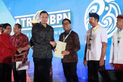 Denpasar, LenteraEsai.id – Pemerintah Kota Denpasar menerima secara resmi puluhan Sertipikat Tanah Elektronik dari Kementerian Agraria dan Tata Ruang/Badan Pertanahan Nasional, yang diserahkan langsung secara simbolis oleh Menteri Agraria dan Tata Ruang/Badan Pertanahan Nasional Agus Harimurti Yudhoyono kepada Wakil Wali Kota Denpasar I Kadek Agus Arya Wibawa, dalam acara Reforma Agraria Summit 2024 yang di Hotel Meru, Sanur, Sabtu (15/6).
