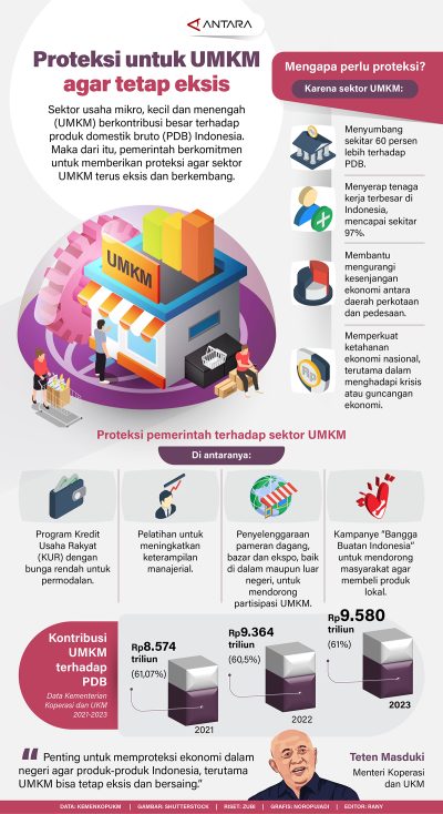 Proteksi Untuk Sektor UMKM Agar Tetap Eksis lentera327 Juli 202427 Juli 2024923 views Sektor usaha mikro, kecil dan menengah (UMKM) berkontribusi besar terhadap produk domestik bruto (PDB) Indonesia. Maka dari itu, pemerintah berkomitmen untuk memberikan proteksi agar sektor UMKM terus eksis dan berkembang. Pos terkaitTujuh Anggota Dewan Komisioner OJK Resmi Dilantik, Perkuat Stabilitas KeuanganViral Video Pasien Diikat, RS Soeharto Heerdjan Bantah Tuduhan SuapWapres Ke-6 RI Try Sutrisno Wafat di RSPAD pada Senin PagiVideo Heboh Anggota Paspampres di London, Istana Angkat BicaraMengkhawatirkan, Kasus HIV di Sorong Naik 48 PersenPolsek Panakukang Dalami Teror Kiriman Kepala Kambing