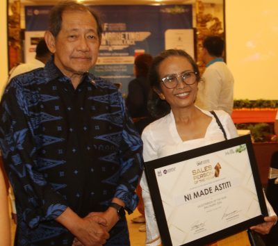 Penghargaan perorangan diberikan kepada Ni Made Astiti sebagai 'Sales Person of The Year Bali – Nusra 2024' pada acara Indonesia Marketing Festival (IMF) 2024 yang digelar oleh MarkPlus Institute, bertempat di Prama Hotel and Resort, Sanur, Kamis (15/8). (Foto: Humas STIKOM Bali)