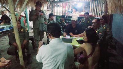 Perbekel Desa Pemogan bersama Satpol PP Kota Denpasar menggelar patroli di sekitar kawasan Taman Pancing pada Senin (23/9) malam. (Foto: Humas Denpasar)