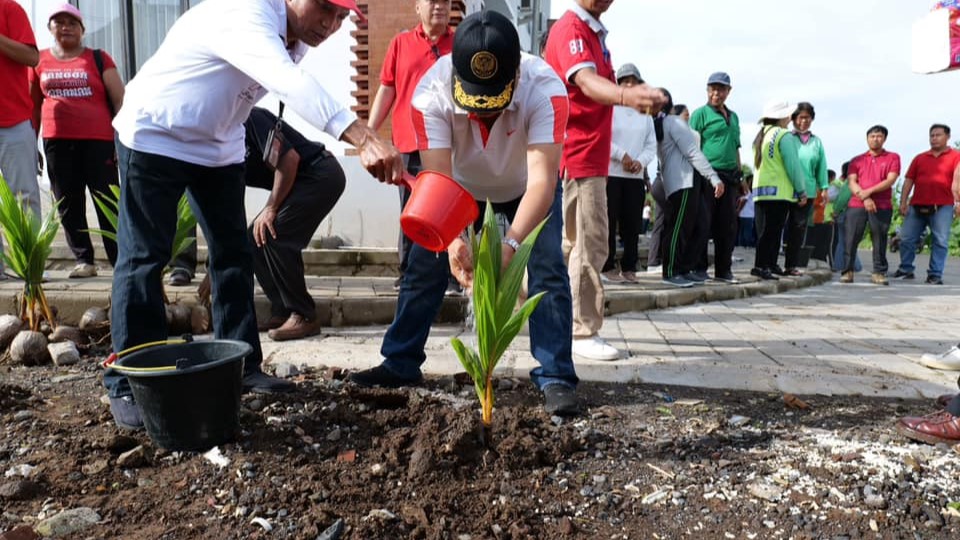 Penanaman bibit pohon kelapa serangkaian peringatan Hari Peduli Sampah Nasional tahun 2025 di Kabupaten Tabanan, Jumat (21/2). (Foto: Prokopim Tabanan)