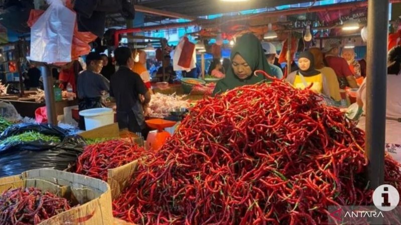 Komoditas cabai merah menjadi salah satu bahan pangan yang kerap mengalami kenaikan menjelang lebaran, Minggu (23/3/2025). (ANTARA/Tuyani)