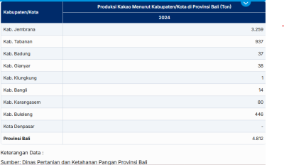 Data produksi kakao Bali (Sumber : Dinas Pertanian dan Ketahanan Pangan Bali)